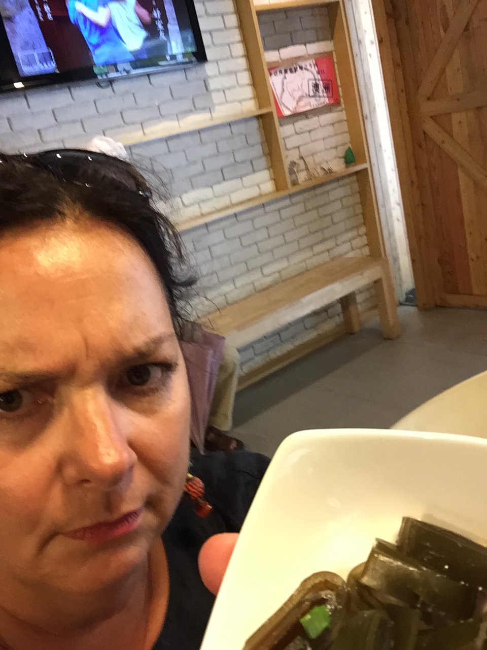 About died of laughter, we were the only people in the shop. Much nicer than the shops around the night market. Max’s therapist must have been working on some personal problems and taking them out on Max’s feet and legs. He was laugh/crying thru most of the massage. I have a Chinese/English app on my phone and he would look up words like: help……..agony………fire. He’d show them to the therapist- or try and say the word and we’d all laugh. The therapist would ask him “hao bu hao?” Good/not good and he’d say “hao”/good. Craziest thing.